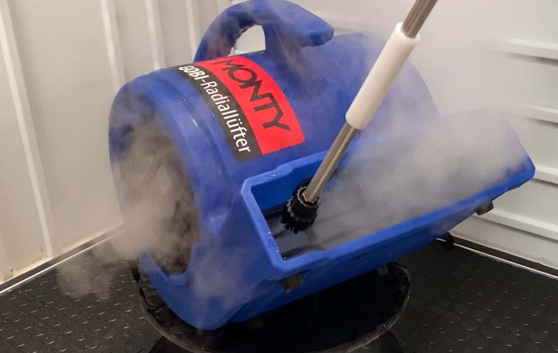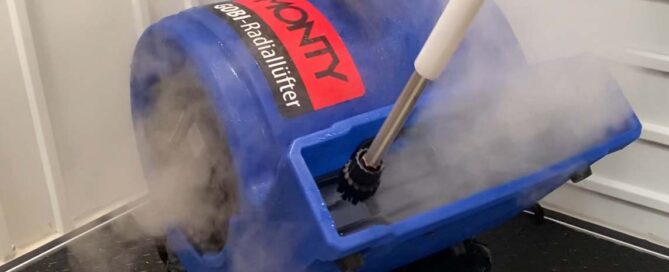 Hochtemperaturdesinfektion von Trocknungstechnik Alle Geräte zur Trocknungstechnik werden beim SchadenDienst24 generell vor dem Einsatz bei Ihnen gereinigt und desinfiziert. Neu ist hierbei, dass alle Luftkanäle mit Hochtemperaturdampf bei rund +150 Grad C. ausgespült werden. Damit werden alle Keime nachhaltig beseitigt